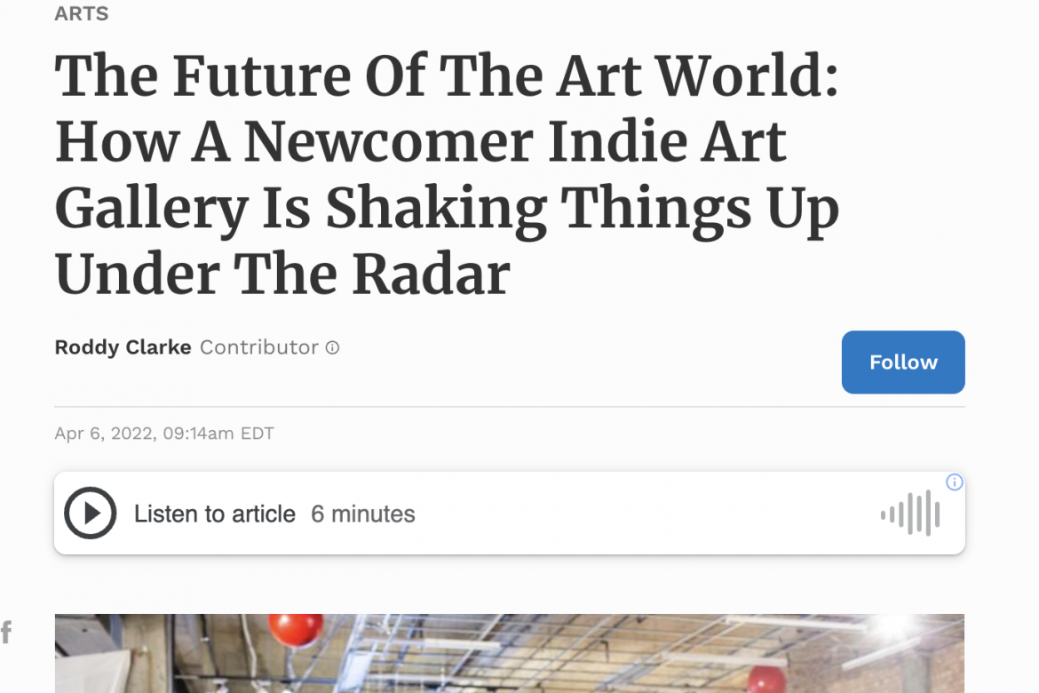Read the article here: ‘The Future Of The Art World: How A Newcomer Indie Art Gallery Is Shaking Things Up Under The Radar’